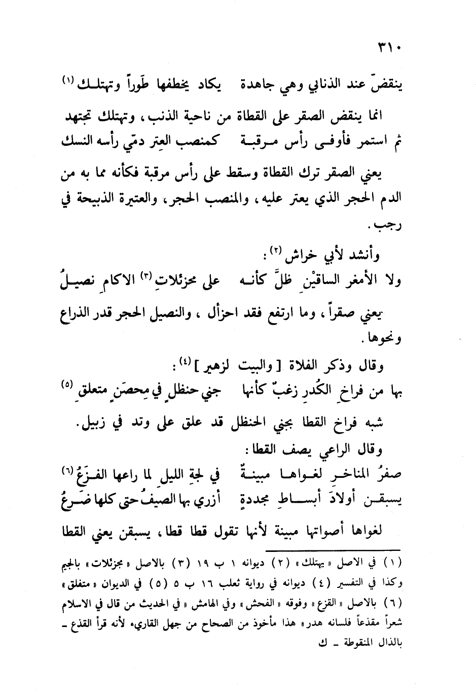 يعني الصقر ترك القطاة وسقط على رأس مرقبة فكأنه مما به من الدم الحجر الذي يعتر عليه، والمنصب الحجر، والعتيرة الذبيحة في رجب.