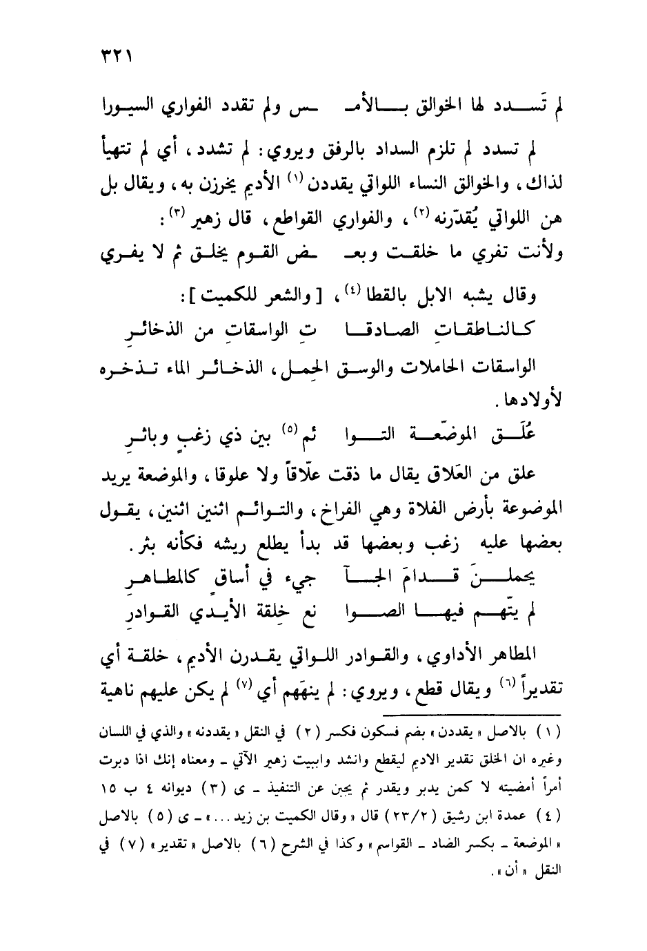 لم تسدد لم تلزم السداد بالرفق ويروي: لم تشدد، أي لم تتهيأ لذاك، والخوالق النساء اللواتي يقددن الأديم يخرزن به، ويقال بل هن اللواتي يُقدّرنه، والفواري القواطع، قال زهير: