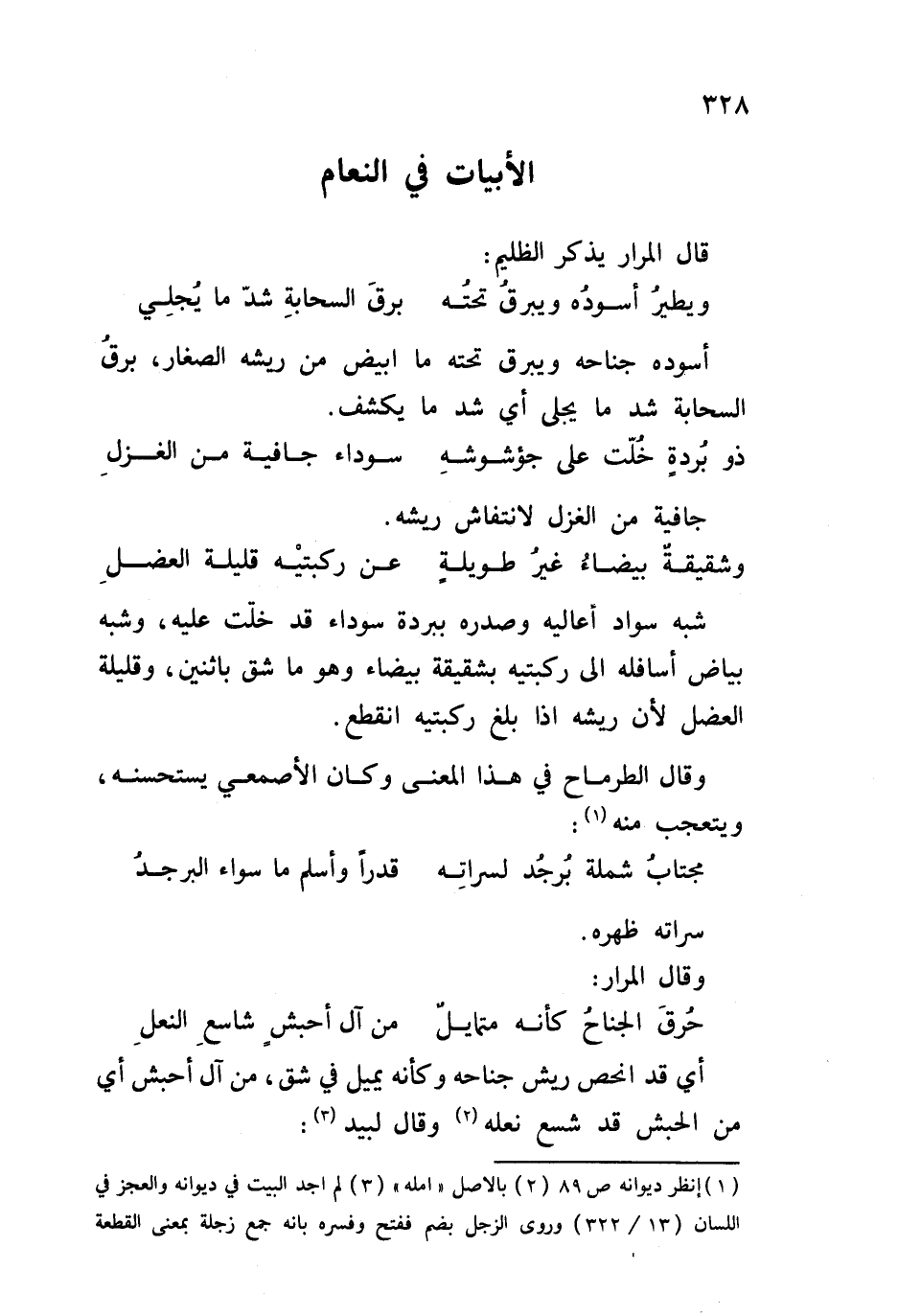 وقال الطرماح في هذا المعنى وكان الأصمعي يستحسنه، ويتعجب منه: