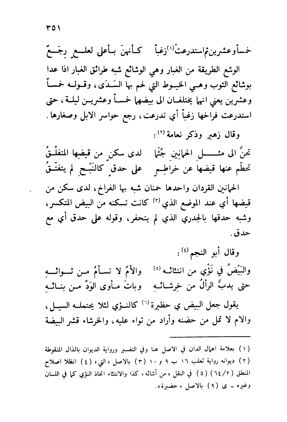 وقال زهير وذكر نعامة: