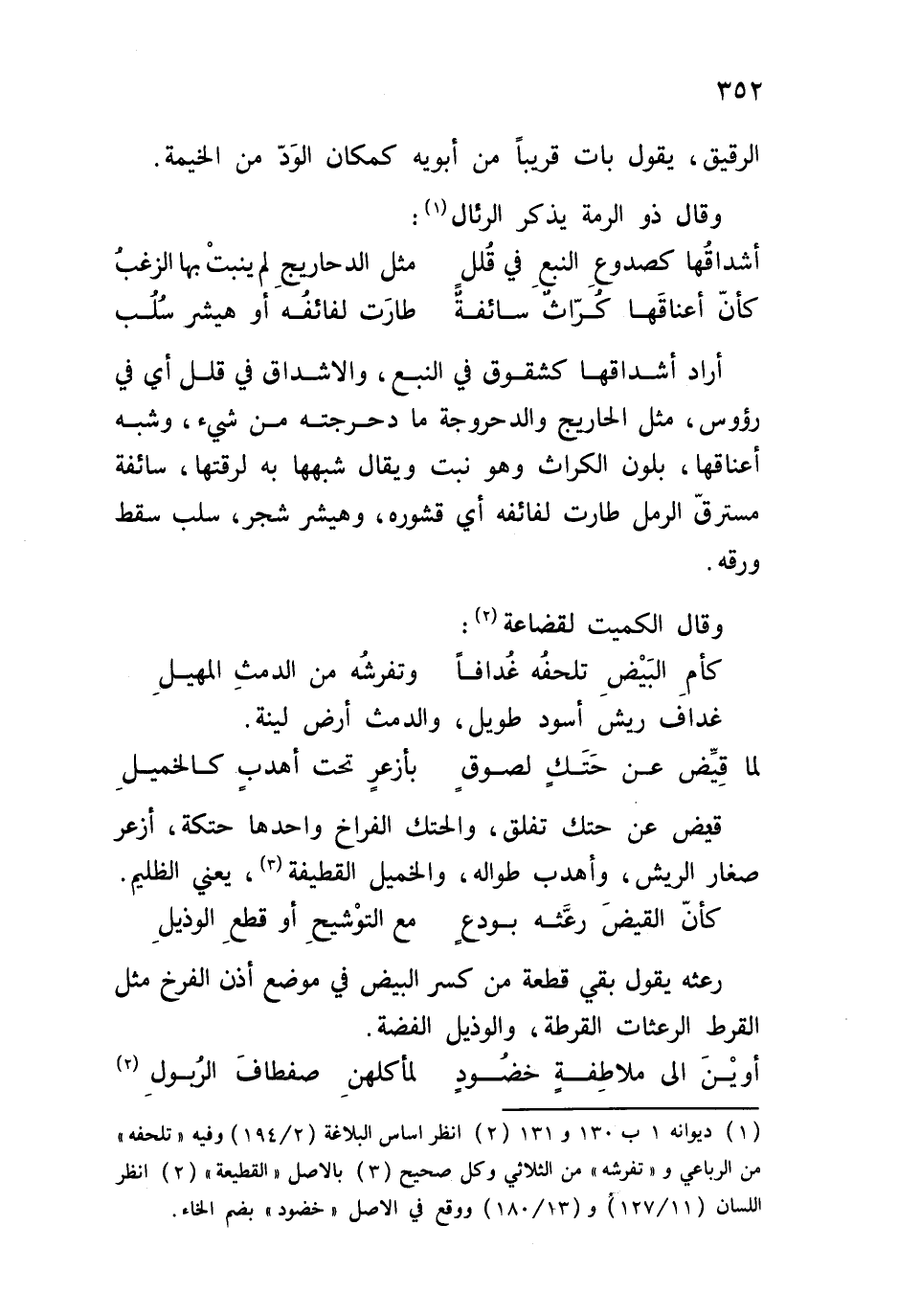كأمِ البيضِ تلحفُه غُدافاً ... وتفرشُه من الدمثِ المهيلِ