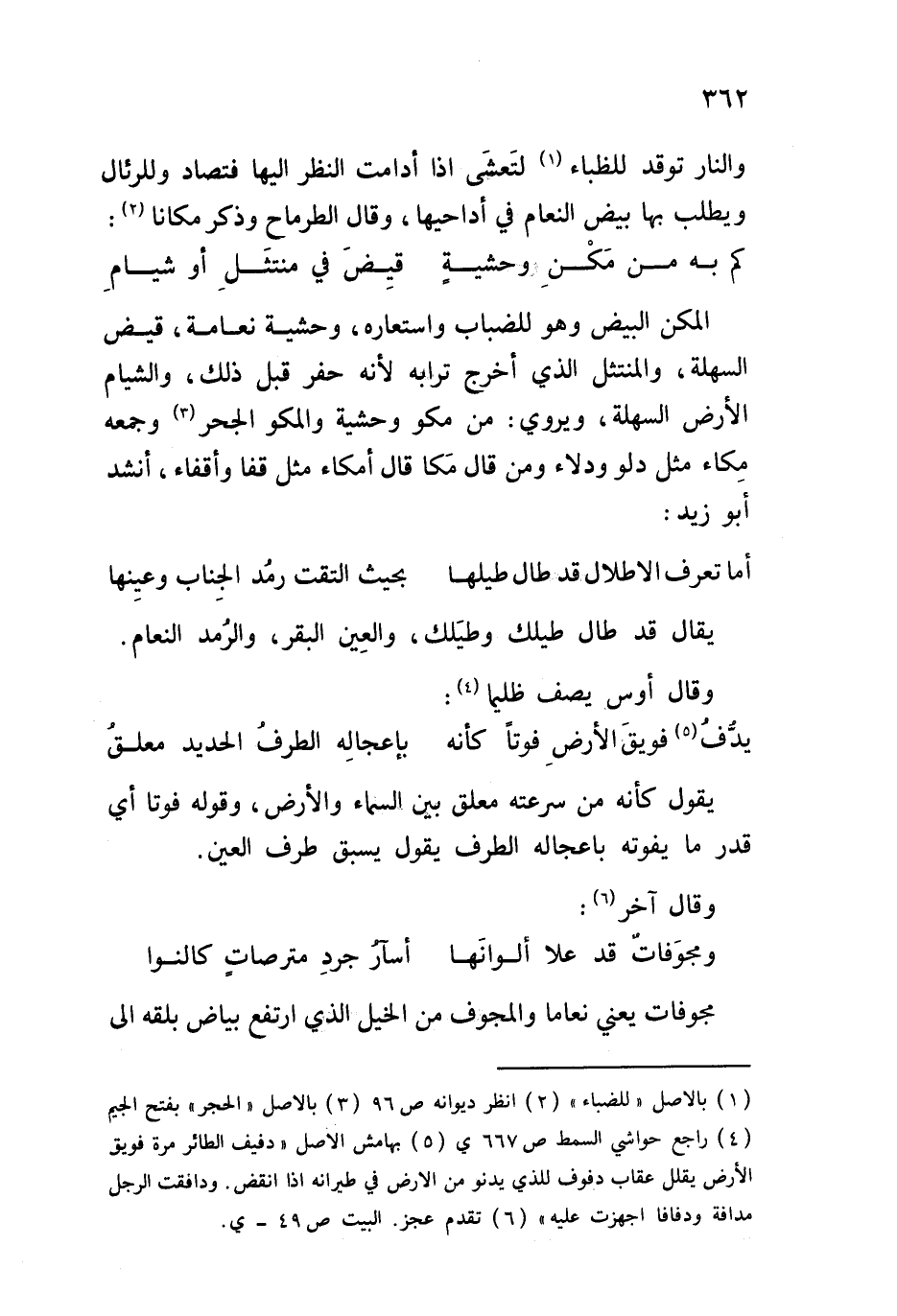 والنار توقد للظباء لتعشى إذا أدامت النظر إليها فتصاد وللرئال ويطلب بها بيض النعام في أداحيها، وقال الطرماح وذكر مكاناً: