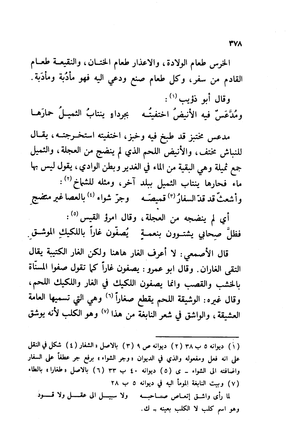 مدعس مختبز قد طبخ فيه وخبز، اختفيته استخرجته، يقال للنباش مختف، والأنيض اللحم الذي لم ينضج من العجلة، والثميل جمع ثميلة وهي البقية من الماء في الغدير وبطن الوادي، يقول ليس بها ماء فحارها ينتاب الثميل ببلد آخر، ومثله للشماخ: