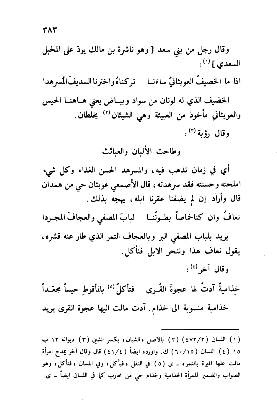 أي في زمان تذهب فيه، والمسرهد الحسن الغذاء وكل شيء أملحته وحسنته فقد سرهدته، قال الأصمعي عوبثان حي من همدان قال وأراد إن لم يضفنا عقرنا إبله، يهجه بذلك.
