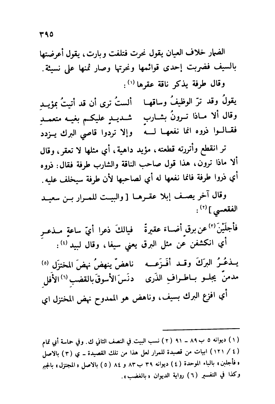 الضمار خلاف العيان يقول نحرت فتلفت وبارت، يقول أعرضتها بالسيف فضربت إحدى قوائمها ونحرتها وصار ثمنها على نسيئة. وقال طرفة يذكر ناقة عقرها: