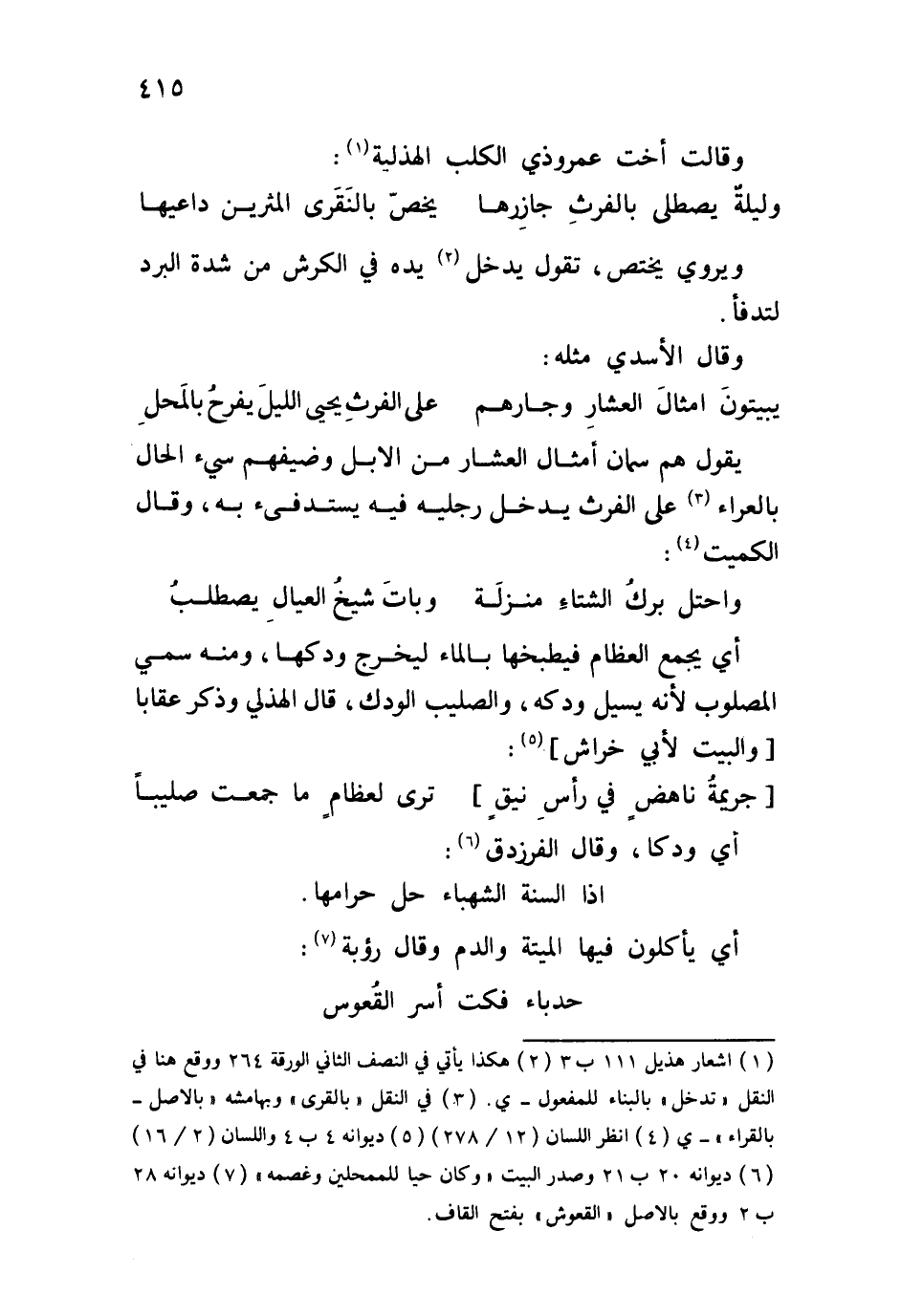 يقول هم سمان أمثال العشار من الإبل وضيفهم سيء الحال بالعراء على الفرث يدخل رجليه فيه يستدفئ به، وقال الكميت: