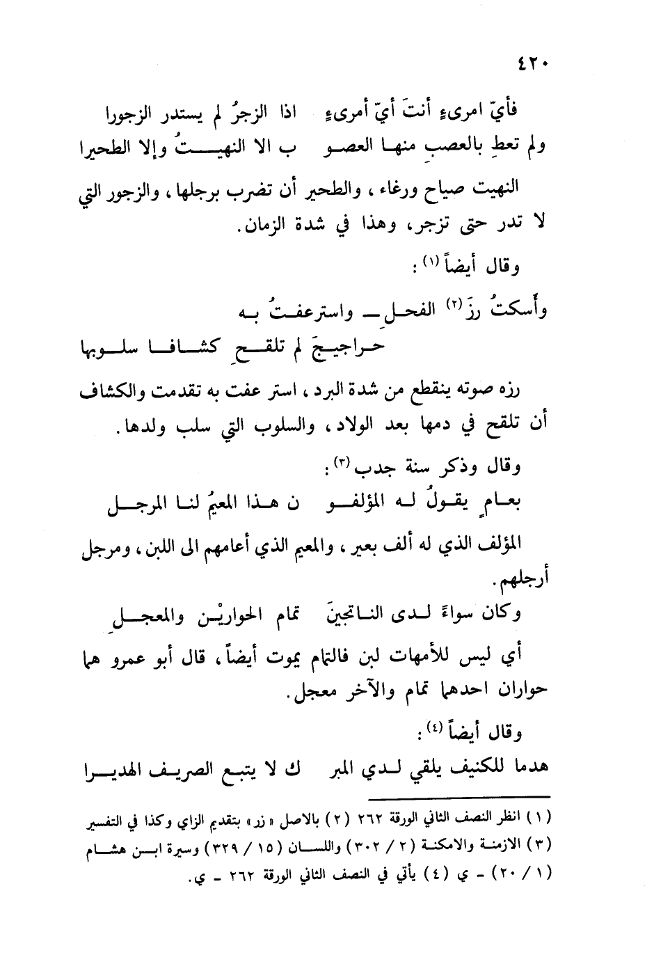 النهيت صياح ورغاء، والطحير أن تضرب برجلها، والزجور التي لا تدر حتى تزجر، وهذا في شدة الزمان.