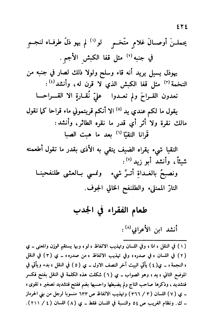 ونصبح بالغداة أتر شيء ... ونمسي بالعشي طلنفحينا