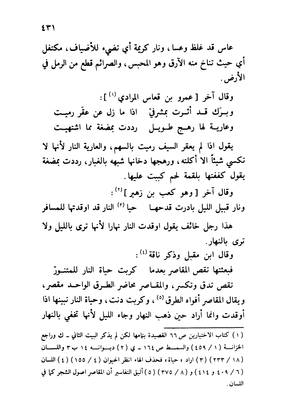 عاس قد غلظ وعسا، ونار كريمة أي تضيء للأضياف، مكتفل أي حيث تناخ منه الآرق هو المحبس، والصرائم قطع من الرمل في الأرض.