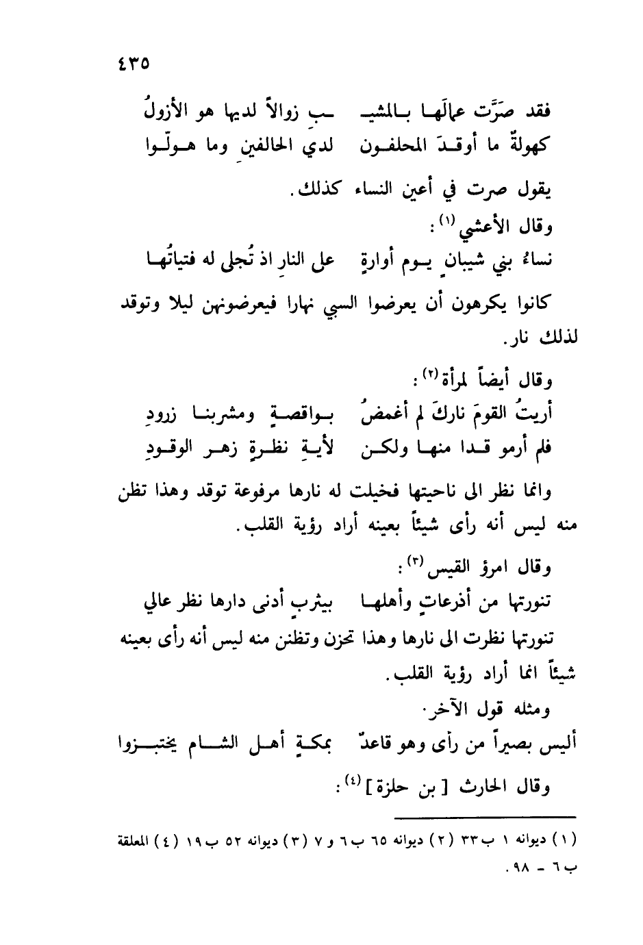 وإنما نظر إلى ناحيتها فخيلت له نارها مرفوعة توقد وهذا تظن منه ليس أنه رأى شيئاً بعينه أراد رؤية القلب.