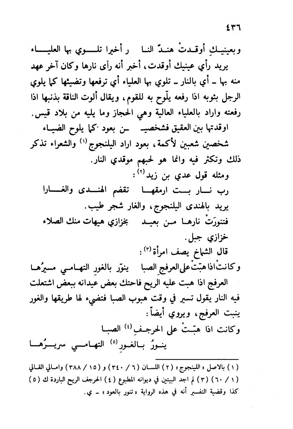 شخصين شعبين لأكمة، بعود أراد اليلنجوج والشعراء تذكر ذلك وتكثر فيه وإنما هو لحبهم موقدي النار.