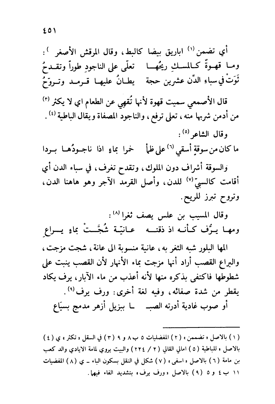 والسوقة أشراف دون الملوك، وتقدح تغرف، في سباء الدن أي أقامت كالسبي للدن، وأصل القرمد الآجر وهو هاهنا الدن، وتروح تبرز للريح.