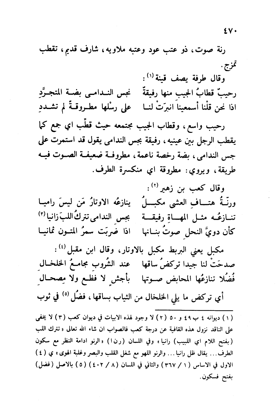 رحيب واسع، وقطاب الجيب مجتمعة حيث قطب أي جمع كما يقطب الرجل بين عينيه، رفيقة بجس الندامى يقول قد استمرت على جس الندامى، بضة رخصة ناعمة، مطروفة ضعيفة الصوت فيه طريقة، ويروي: مطروقة أي منكسرة الطرف.