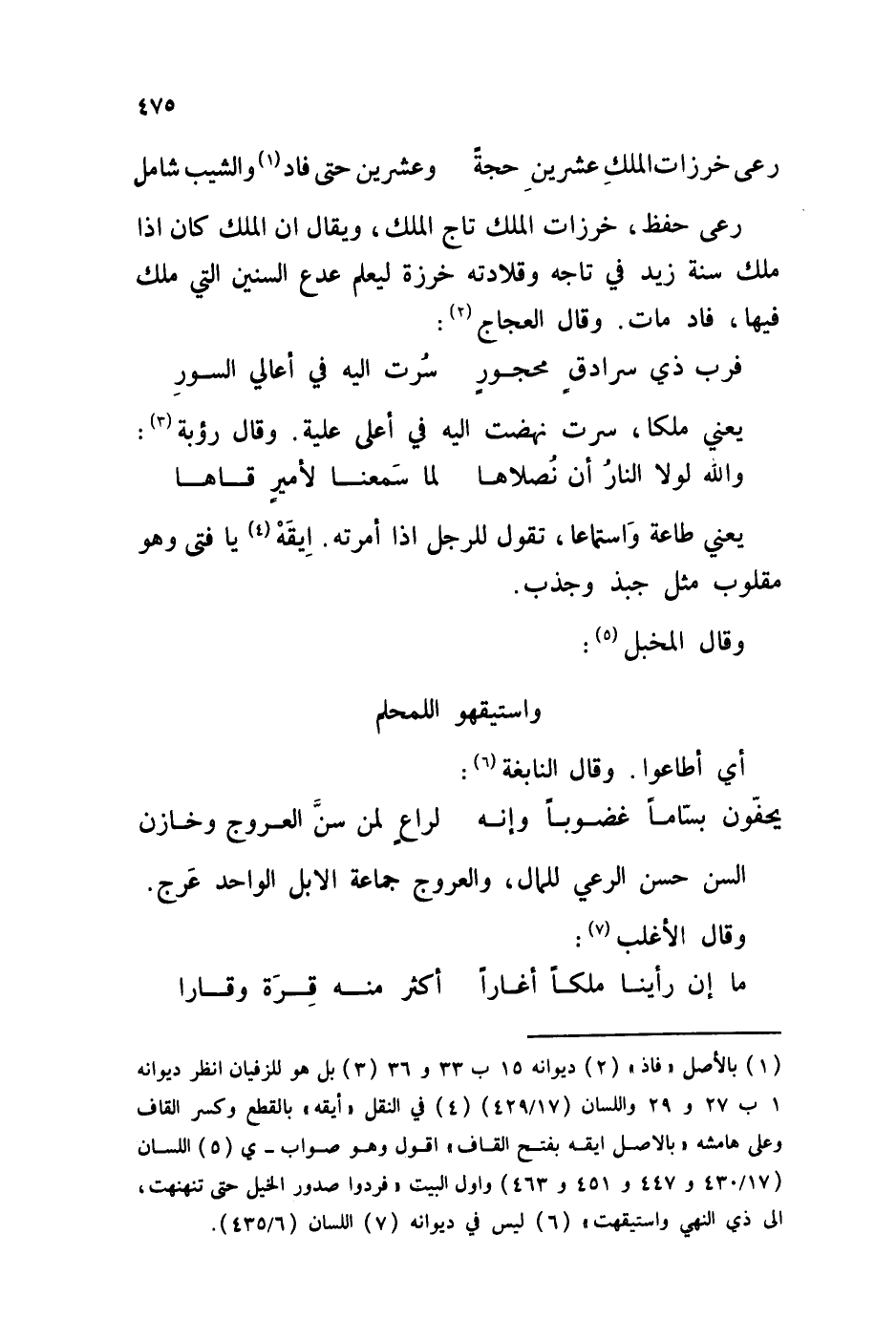 رعى حفظ، خرزات الملك تاج الملك، ويقال إن الملك كان إذا ملك سنة زيد في تاجه وقلادته خرزة ليعلم عدد السنين التي ملك فيها، فاد مات، وقال العجاج:
