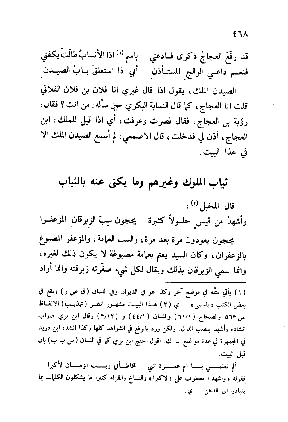 قد رفع العجاج ذكرى فادعني ... باسم إذا الأنساب طالت يكفني