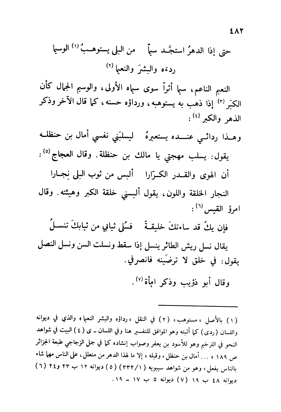 النعيم الناعم، سيما أثر سوى سيماه الأولى، والوسيم الجمال كأن الكبر إذا ذهب به يستوهبه، ورداؤه حسنه، كما قال الآخر وذكر الذهر والكبر: