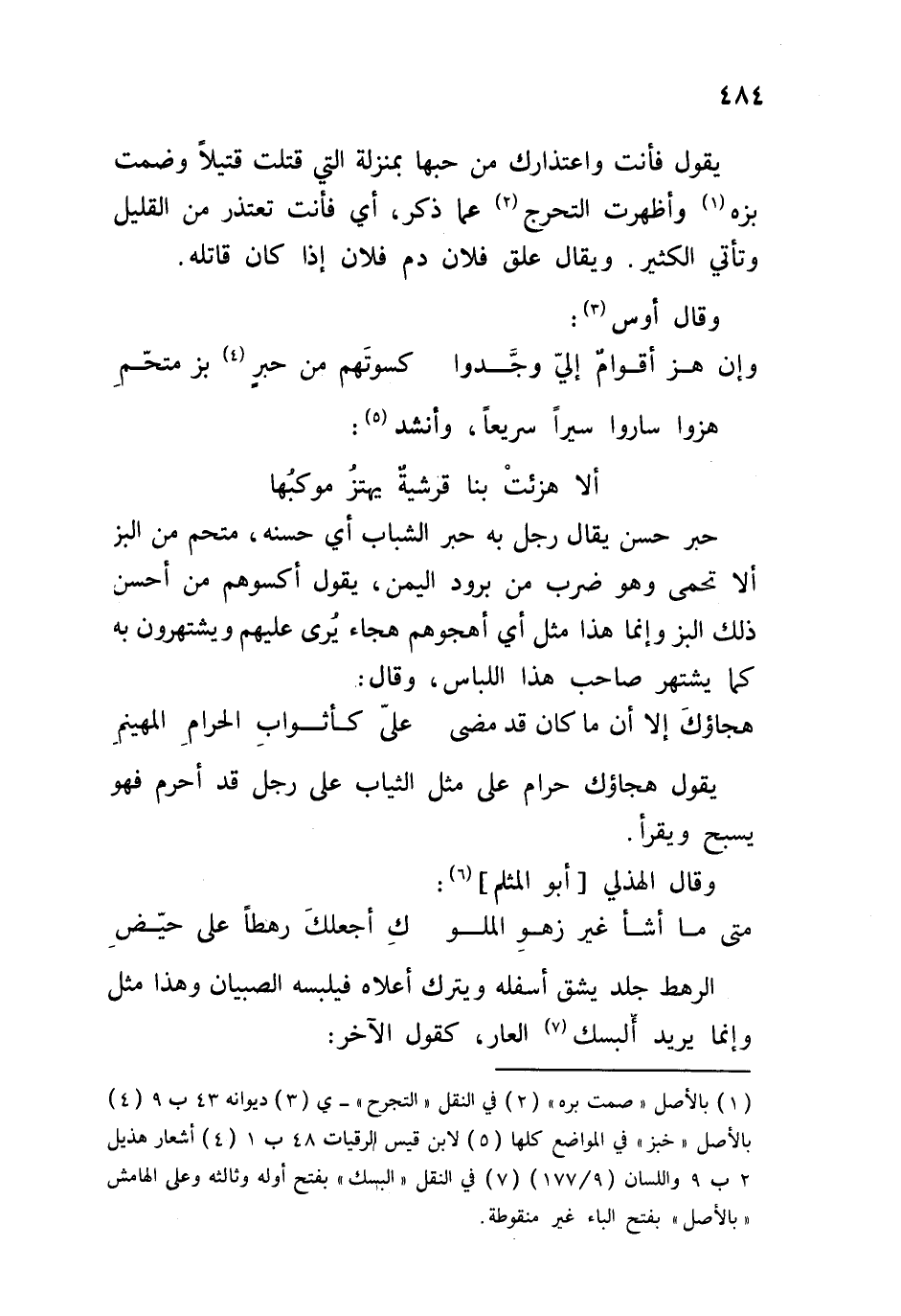 حبر حسن يقال رجل به حبر الشباب أي حسنه، متحم من البز ألا تحمى وهو ضرب من برود اليمن، يقول أكسوهم من أحسن ذلك البز وإنما هذا مثل أي أهجوهم هجاء يرى عليهم ويشتهرون به كما يشتهر صاحب هذا اللباس، وقال: