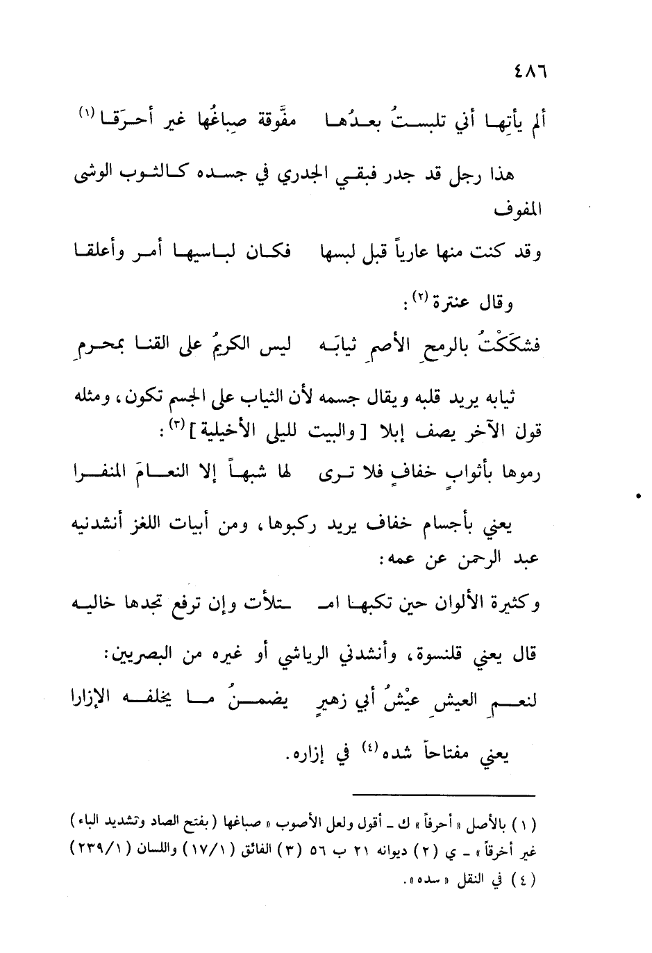 ألم يأتها أني تلبست بعدها ... مفوقة صباغها غير أحرقا