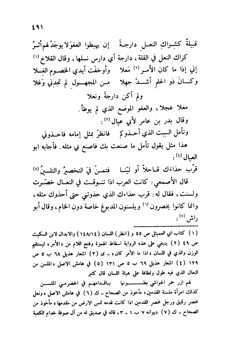 قال الأصمعي: كانت العرب إذا تنوقت في النعال خصرت ولسنت، فقال له: قرب حذاءك الذي حذوتني حتى أحذوك مثله، وإنما كانوا يخصرون ويلسنون المدبوغ خاصة دون الخام، وقال أبو راش: