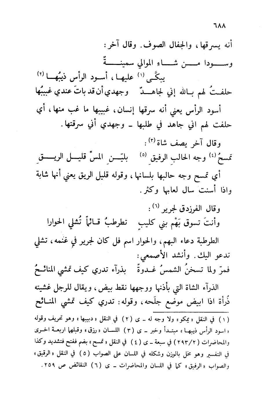 أسود الرأس يعني أنه سرقها إنسان، غبيبها ما غب منها، أي حلفت لهم أني جاهد في طلبها - وجهدي أني سرقتها. وقال آخر يصف شاة: