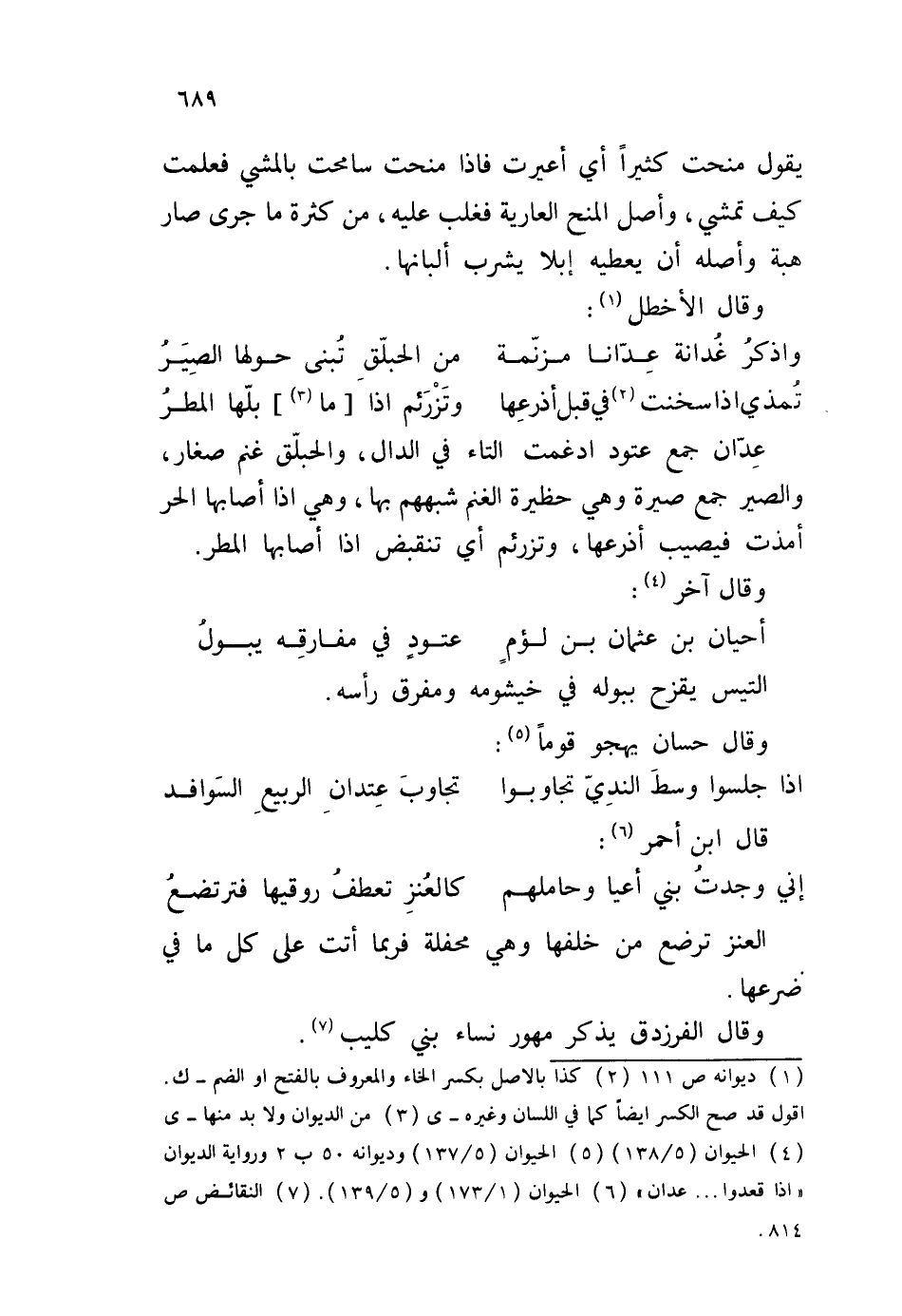 يقول منحت كثيراً أي أعيرت فإذا منحت سامحت بالمشي فعلمت كيف تمشي، وأصل المنح العارية فغلب عليه، من كثرة ما جرى صار هبة وأصله أن يعطيه إبلا يشرب ألبانها. وقال الأخطل: