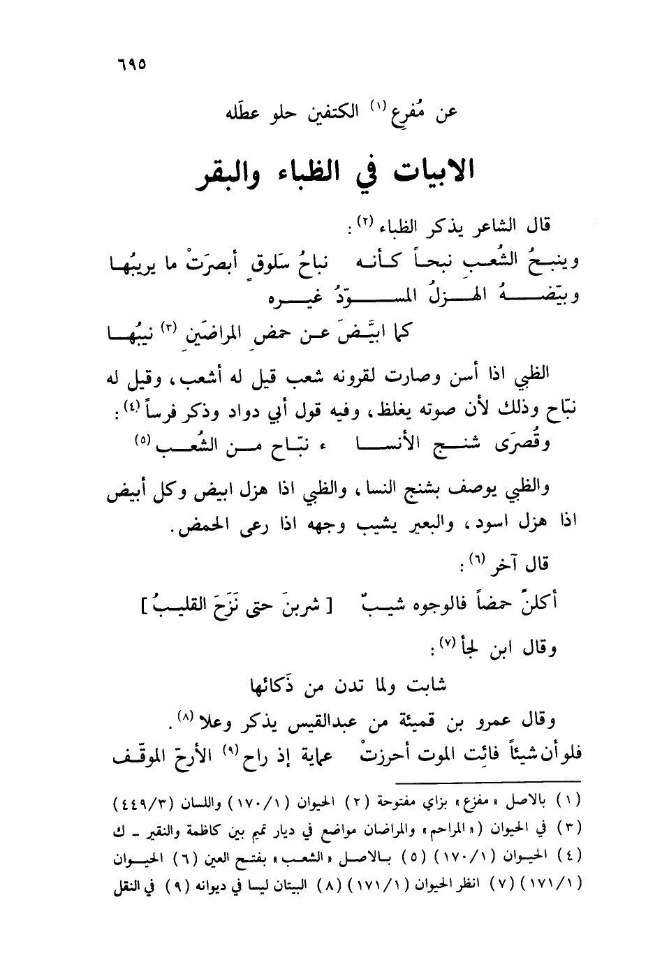 الأبيات في الظباء والبقر