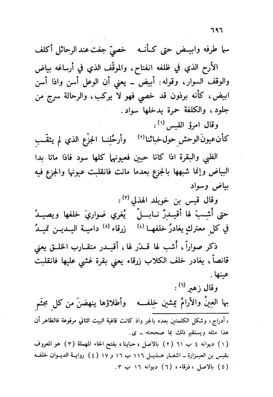 كأن عيون الوحش حول خبائناوأرحلنا الجزع الذي لم يثقّب الظبي والبقرة إذا كانا حيين فعيونهما كلها سود فإذا ماتا بدا البياض وإنما شبهها بالجزع بعدما ماتت فانقلبت عيونها والجزع فيه بياض وسواد. وقال قيس بن خويلد الهذلي: