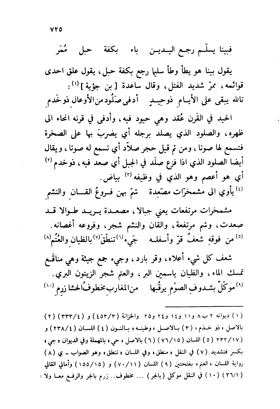 يقول بينا هو يطأ سليما رجع بكفة حبل، يقول علق إحدى قوائمه، ممرّ شديد الفتل، وقال ساعدة بن جؤية: