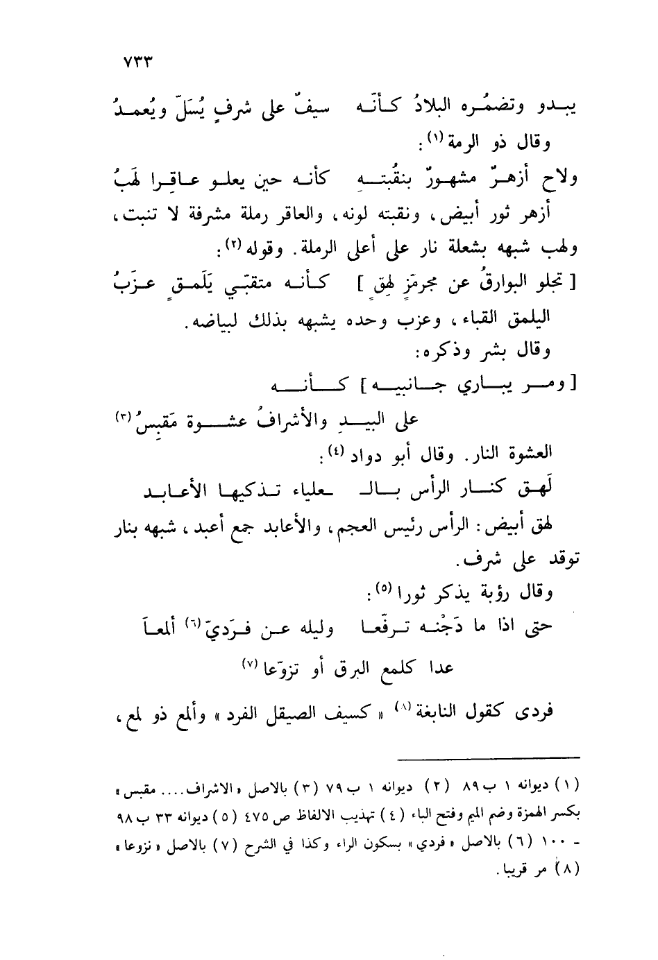 فردى كقول النابغة " كسيف الصيقل الفرد " وألمع ذو لمع،