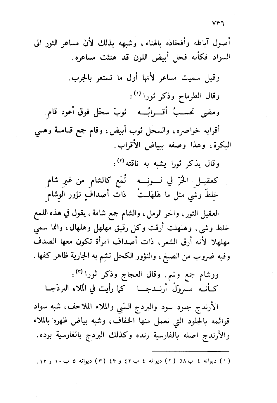 الأرندج جلود سود والبردج السبي والملاء الملاحف، شبه سواد قوائمه بالجلود التي تعمل منها الخفاف، وشبه بياض ظهره بالملاء والأرندج أصله بالفارسية رنده وكذلك البردج بالفارسية برده
