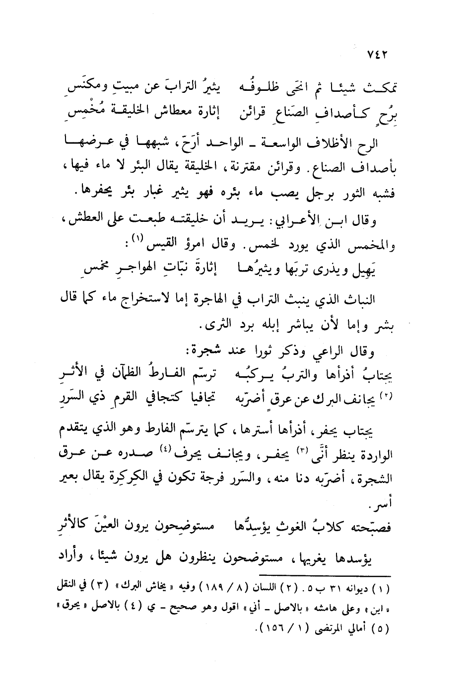 الرح الأظلاف الواسعة - الواحد أرحّ، شبهها في عرضها بأصداف الصناع. وقرائن مقترنة، الخليقة يقال البئر لا ماء فيها، فشبه الثور برجل يصب ماء بئره فهو يثير غبار بئر يحفرها.
