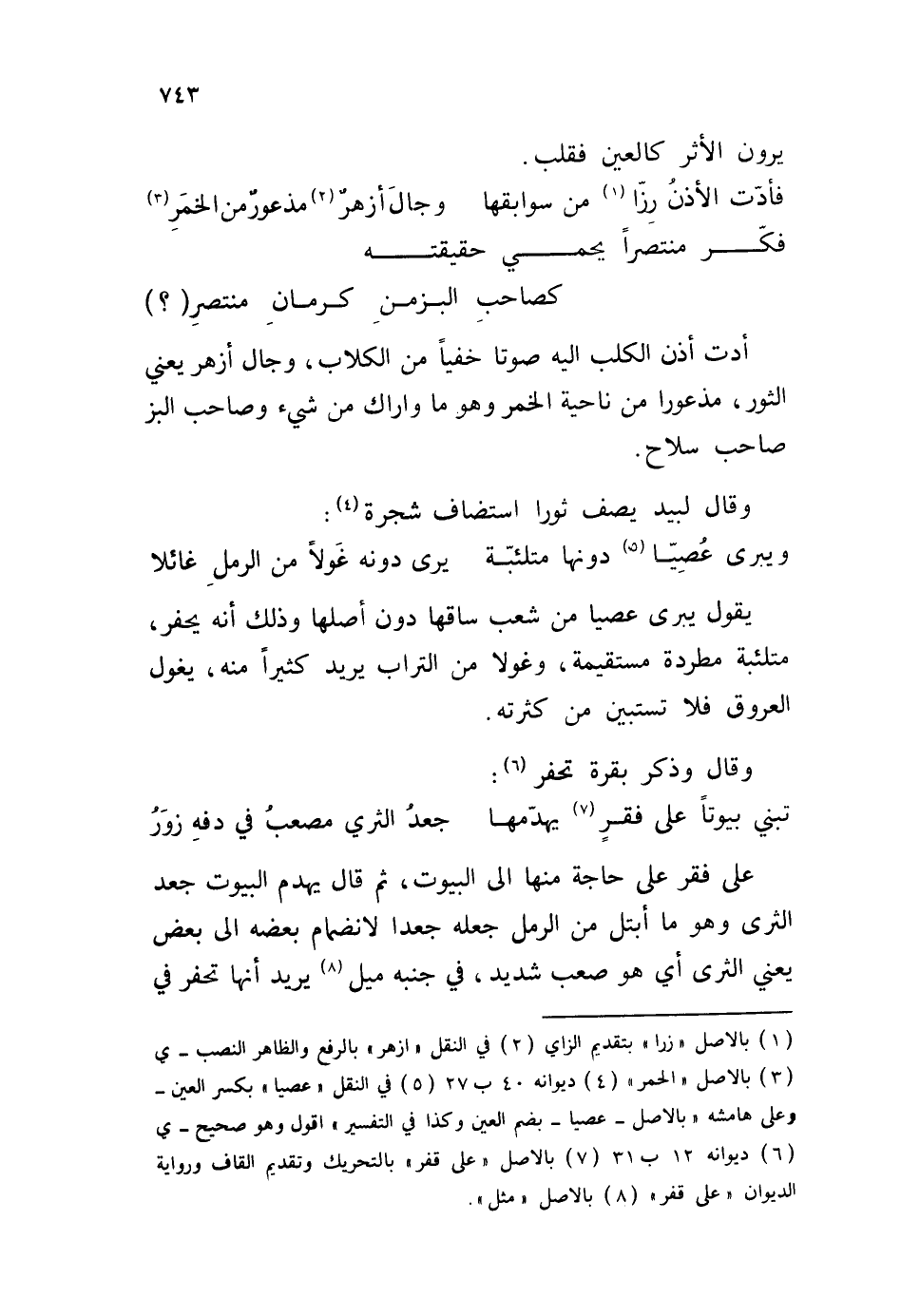 أدت أذن الكلب إليه صوتا خفيا من الكلاب، وجال أزهر يعني الثور، مذعورا من ناحية الخمر وهو ما واراك من شيء وصاحب البز صاحب سلاح.