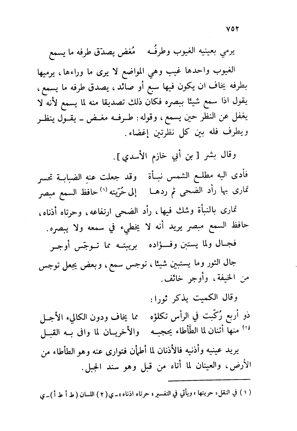 تمارى بالنبأة وشك فيها، رأد الضحى ارتفاعه، وحرتاه أذناه، حافظ السمع مبصر يريد أنه لا يخطيء في سمعه ولا في يبصره.