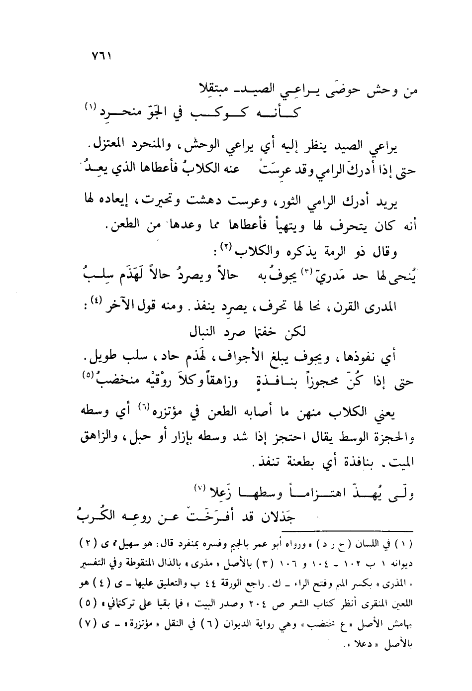 من وحش حوضى يراعي الصيد مبتقلاكأنه كوكب في الجوّ منحرد