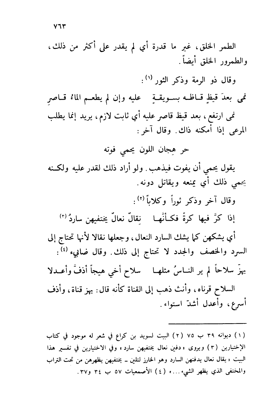نمى ارتفع، بعد قيظ قاصر عليه أي ثابت لازم، يريد إنما يطلب المرعى إذا أمكنه ذاك. وقال آخر: