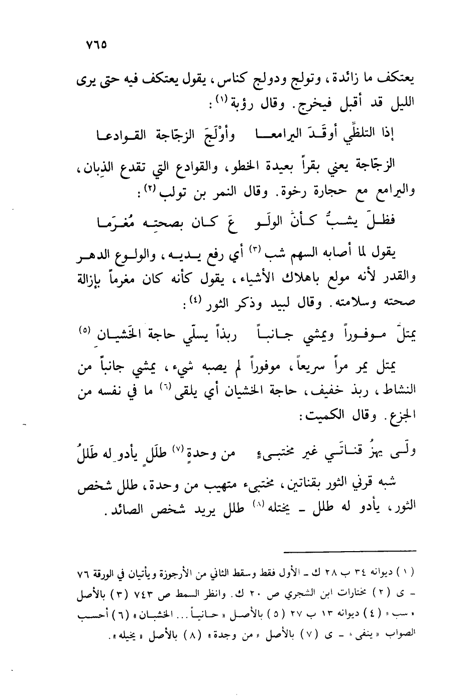 يعتكف ما زائدة، وتولج ودولج كناس، يقول يعتكف فيه حتى يرى الليل قد أقبل فيخرج. وقال رؤبة: