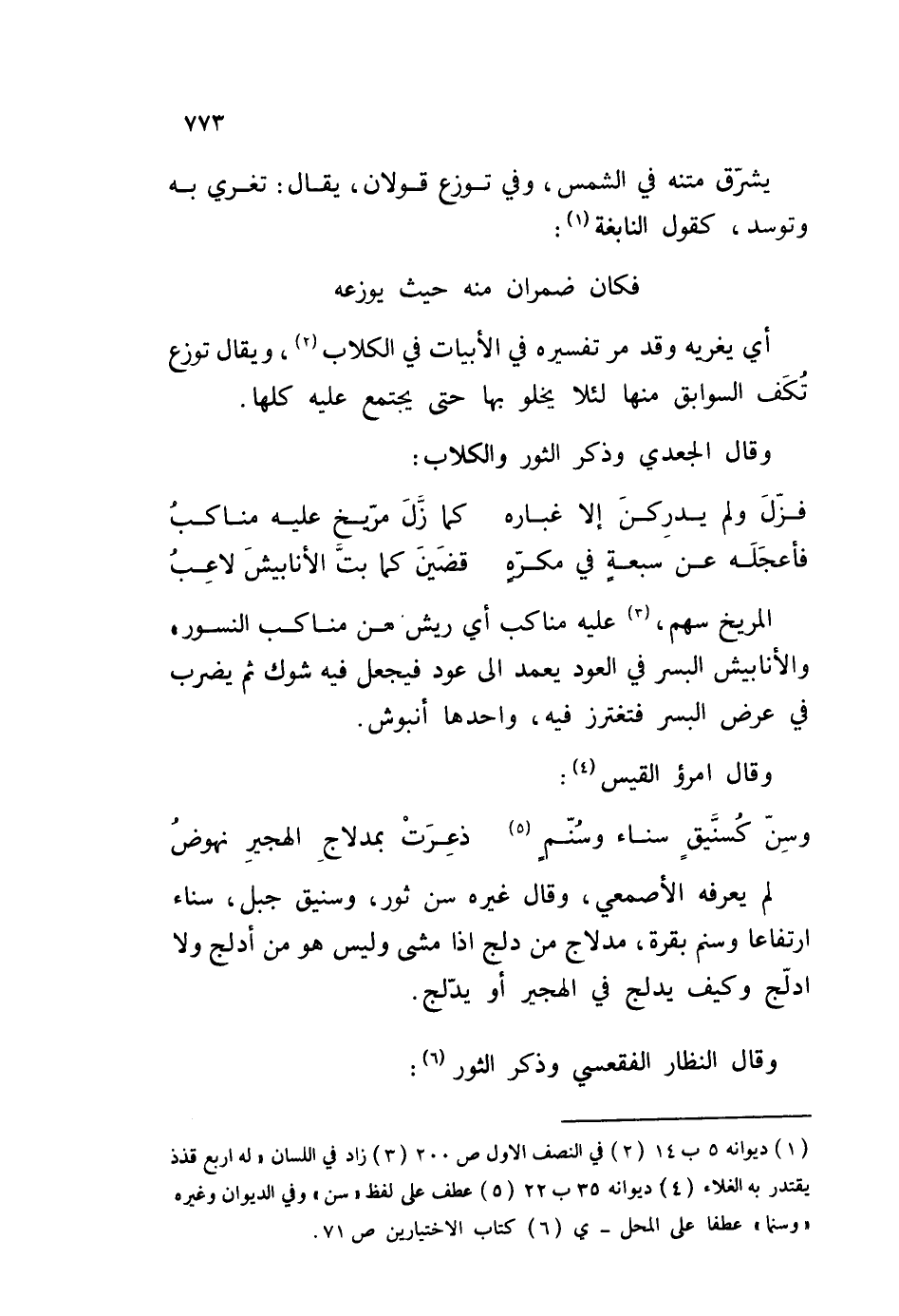 لم يعرفه الأصمعي، وقال غيره سن ثور، وسنيق جبل، سناء ارتفاعا وسنم بقرة، مدلاج من دلج إذا منشى وليس هو من أدلج ولا ادلّج وكيف يدلج في الهجير أو يدّلج.