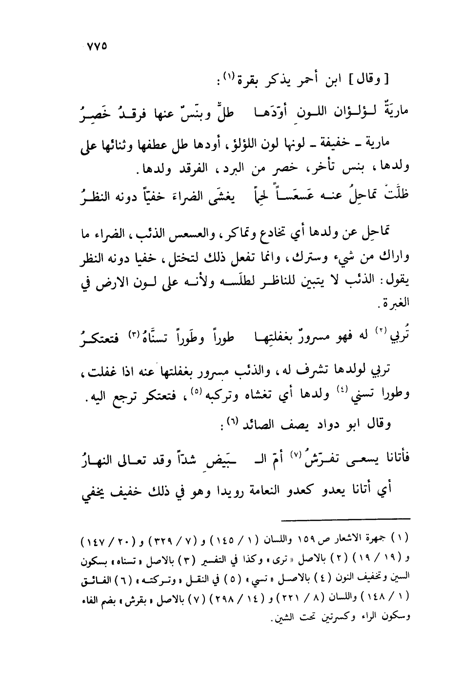 تماحل عن ولدها أي تخادع وتماكر، والعسعس الذئب، الضراء ما واراك من شيء وسترك، وإنما تفعل ذلك لتختل، خفيا دونه النظر يقول: الذئب لا يتبين للناظر لطلَسه ولأنه على لون الأرض في الغبرة.