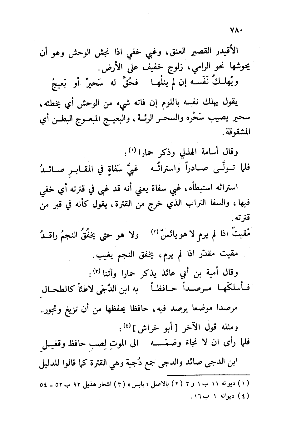 يقول يهلك نفسه باللوم إن فاته شيء من الوحش أي يخطئه، سحير يصيب سَحْره والسحر الرئة، والبعيج المبعوجَ البطن أي المشقوقة. وقال أسامة الهذلي وذكر حمارا: