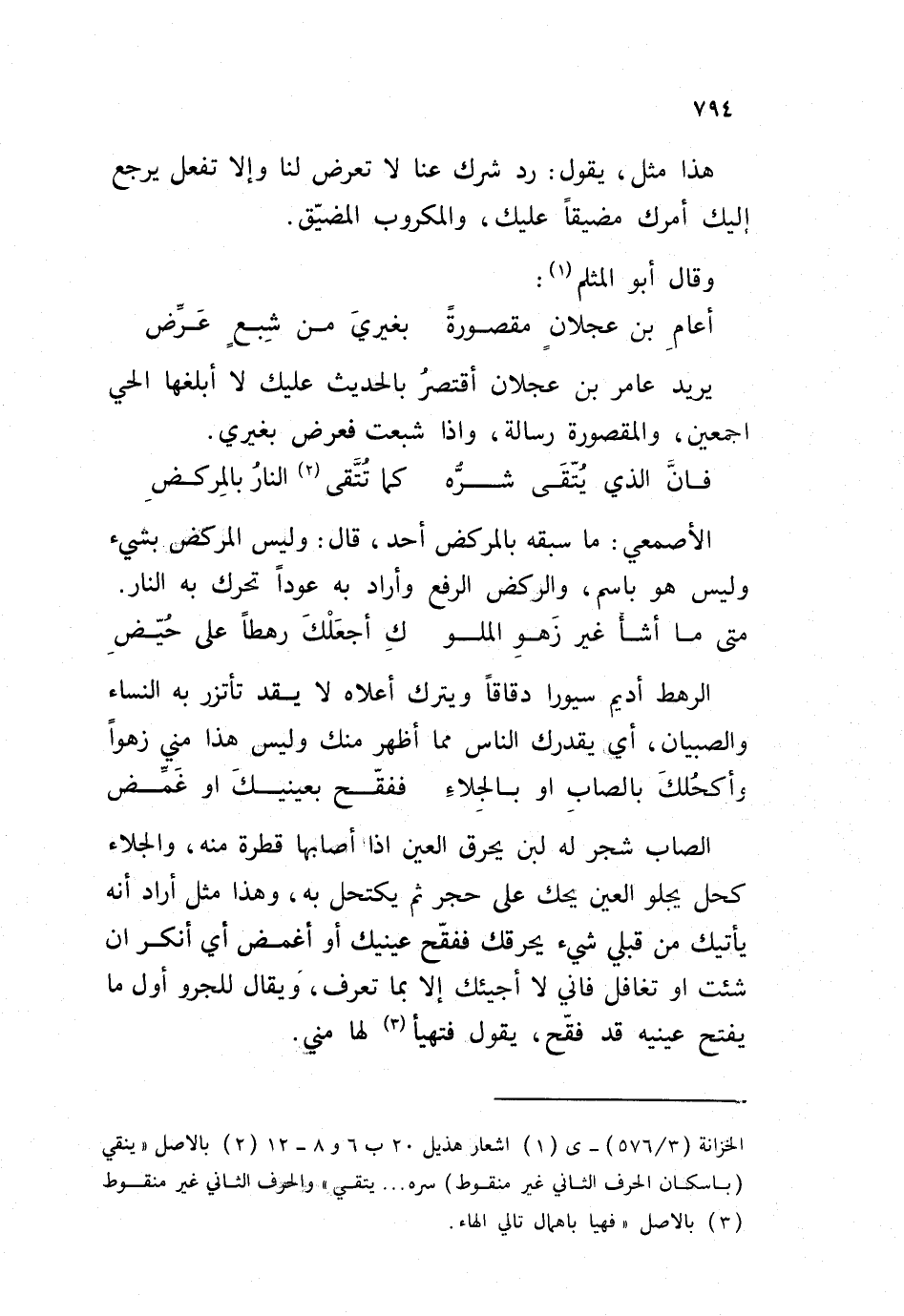 يريد عامر بن عجلان أقتصر بالحديث عليك لا أبلغها الحي أجمعين، والمقصورة رسالة، وإذا شبعت فعرض بغيري.