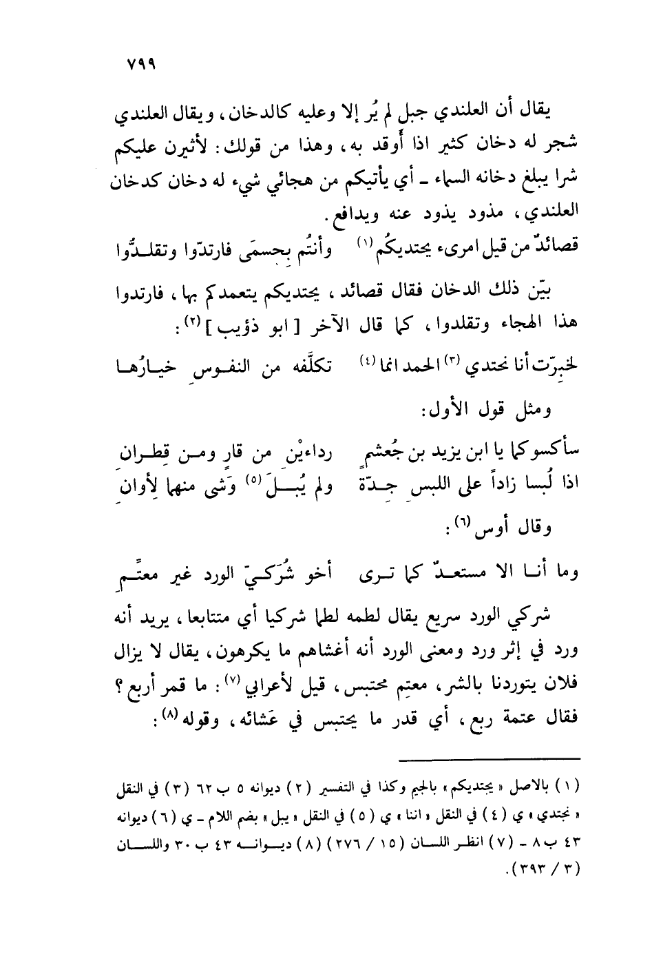 بيّن ذلك الدخان فقال قصائد، يحتديكم يتعمدكم بها، فارتدوا هذا الهجاء وتقلدوا، كما قال الآخر أبو ذؤيب: