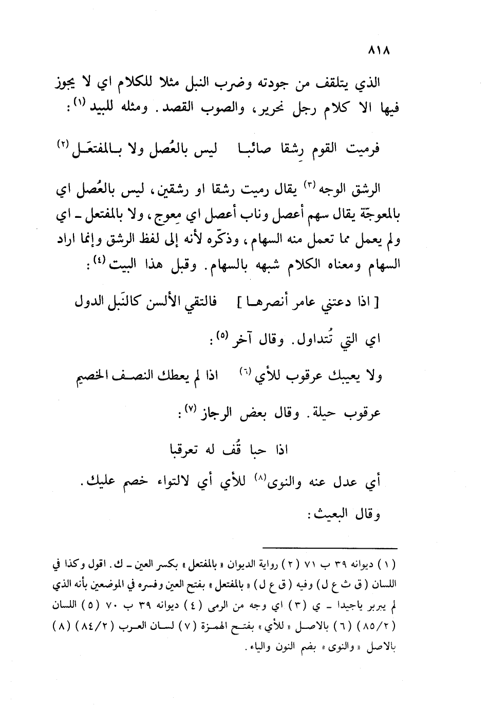 فرميت القوم رشقا صائبا ... ليس بالعُصل ولابالمفتعَل