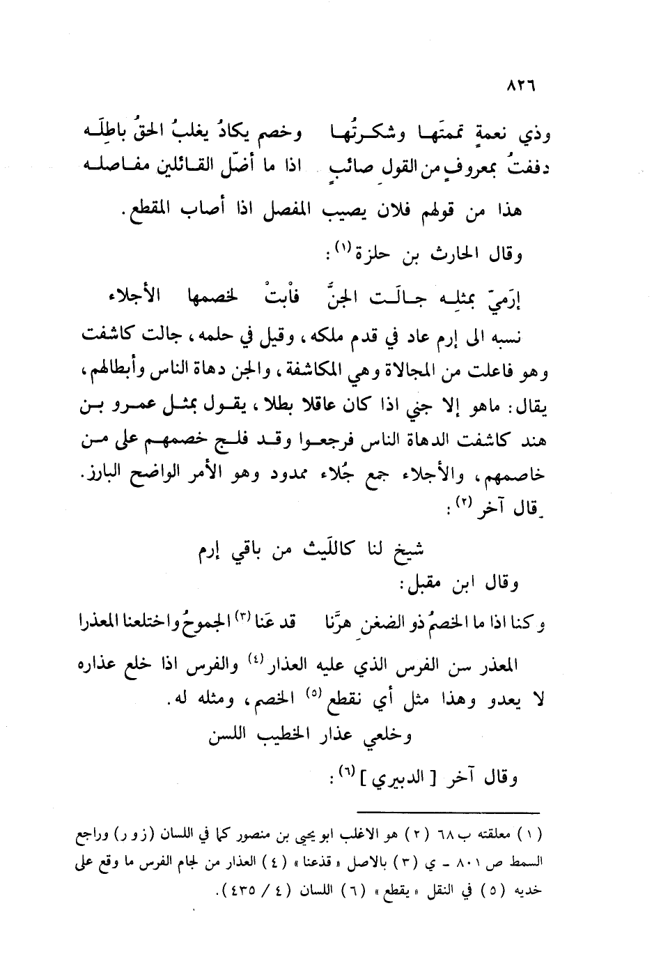 نسبه إلى إرم عاد في قدم ملكه، وقيل في حلمه، جالت كاشفت وهو فاعلت من المجالاة وهي المكاشفة، والجن دهاة الناس وأبطالهم، يقال: ما هو إلا جني إذا كان عاقلا بطلا، يقول بمثل عمرو بن هند كاشفت الدهاة الناس فرجعوا وقد فلج خصمهم على من خاصمهم، والأجلاء جمع ممدود وهو الأمر الواضح البارز. قال آخر: