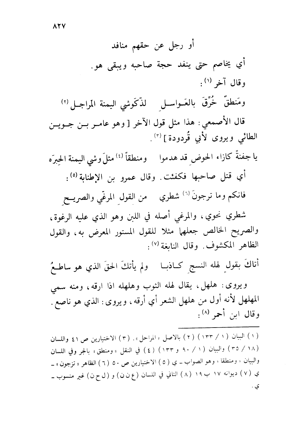 ومَنطق خُرِّقَ بالعَواسلِ ... لذّكَوشي اليمنة المراجل