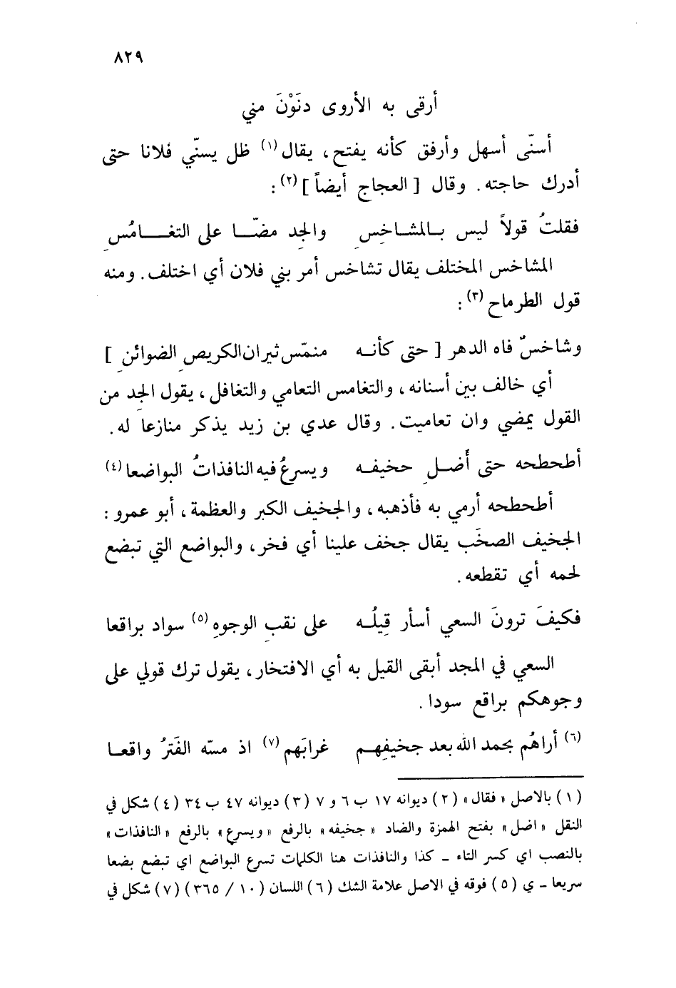 أسنّى أسهل وأرفق كأنه يفتح، يقال ظل يسنّي فلانا حتى أدرك حاجته. وقال العجاج أيضاً: