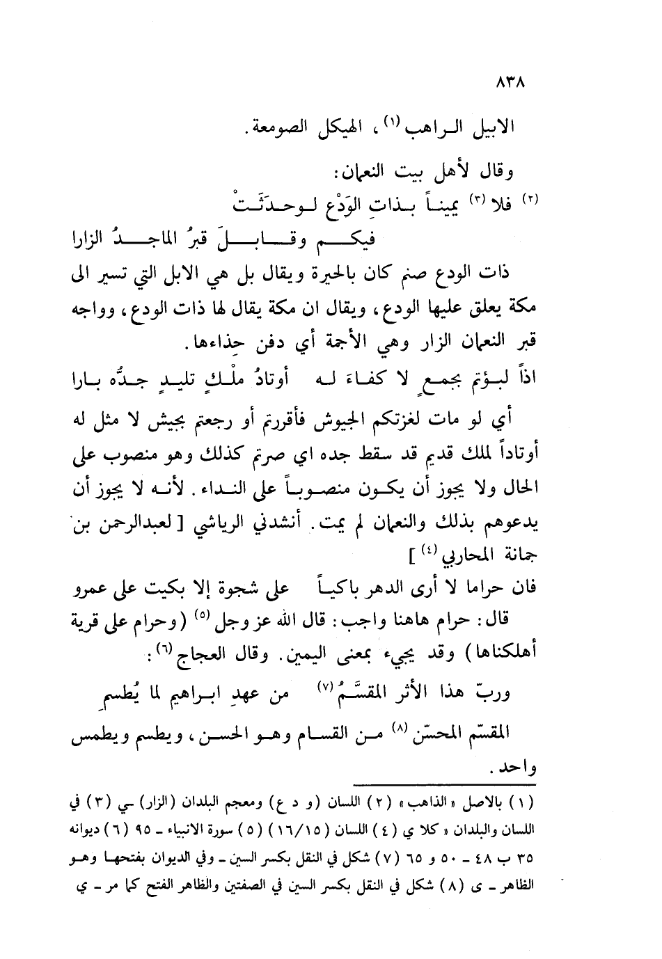 ذات الودع صنم كان بالحيرة ويقال بل هي الابل التي تسير إلى مكة يعلق عليها الودع، ويقال إن مكة يقال لها ذات الودع، وواجه قبر النعمان الزار وهي الأجمة أي دفن حذاءها.
