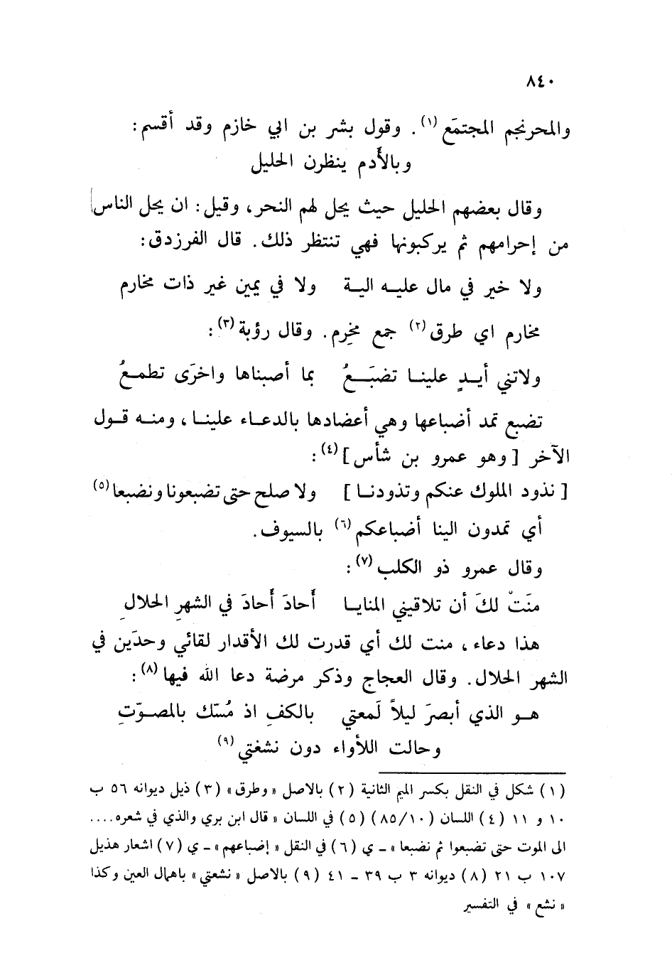 وقال بعضهم الحليل حيث يحل لهم النحر، وقيل: ان يحل الناس من إحرامهم ثم يركبونها فهي تنتظر ذلك. قال الفِرزدق: