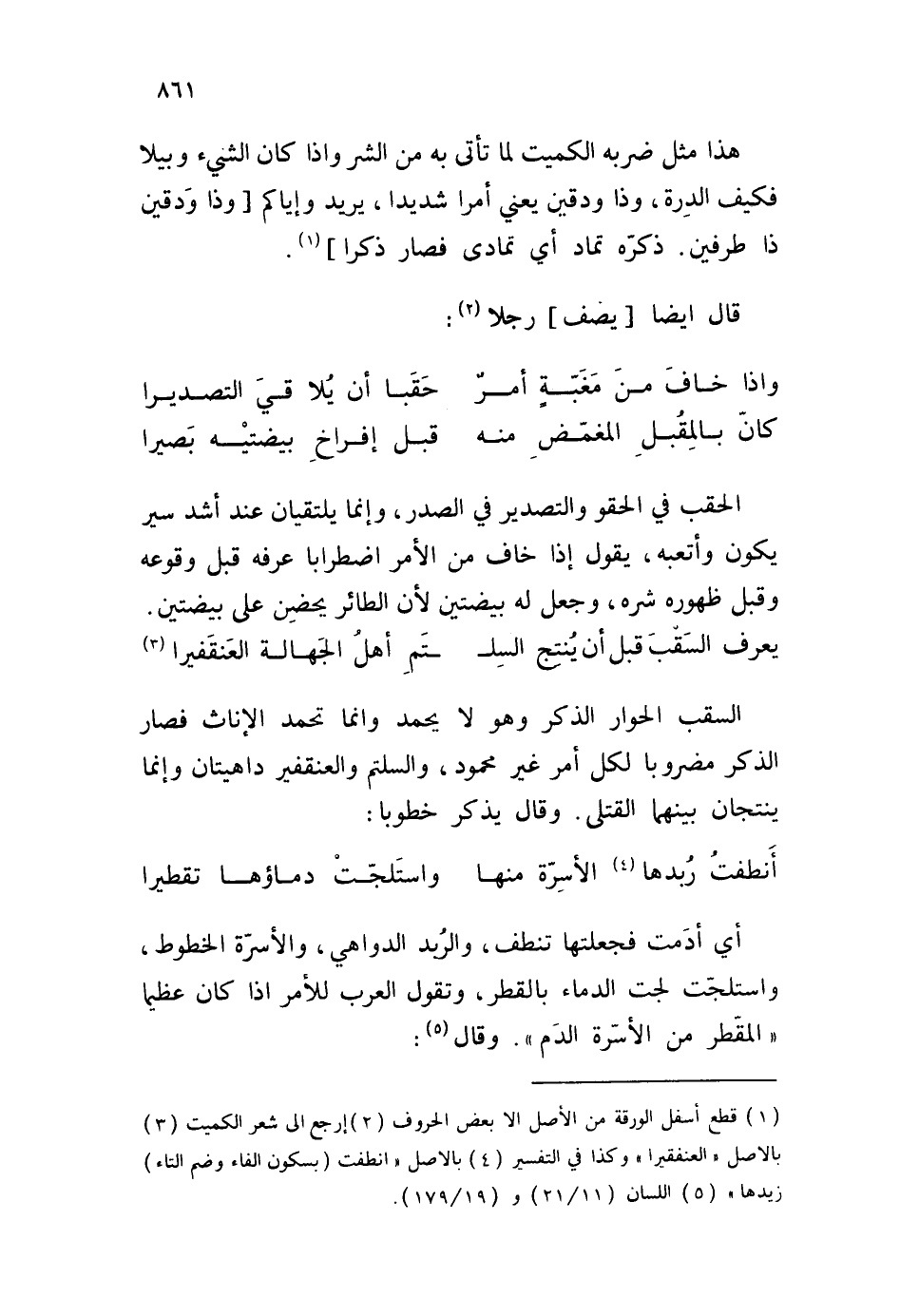 كانّ بالمِقُبل المغمّض منه ... قبل إفراخ بيضتيْه بَصيرا
