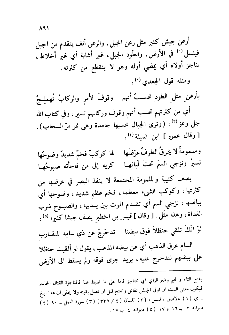آرعن جيش كثير مثل رعن الجبل، والرعن أنف يتقدم من الجبل فينسل في الأرض، والطَود الجبل، غير أشابة أي غير أخلاط، تناجز أولاه أي يمضي أوله وهو لا ينقطع من كثرته. ومثله قول الجعدي: