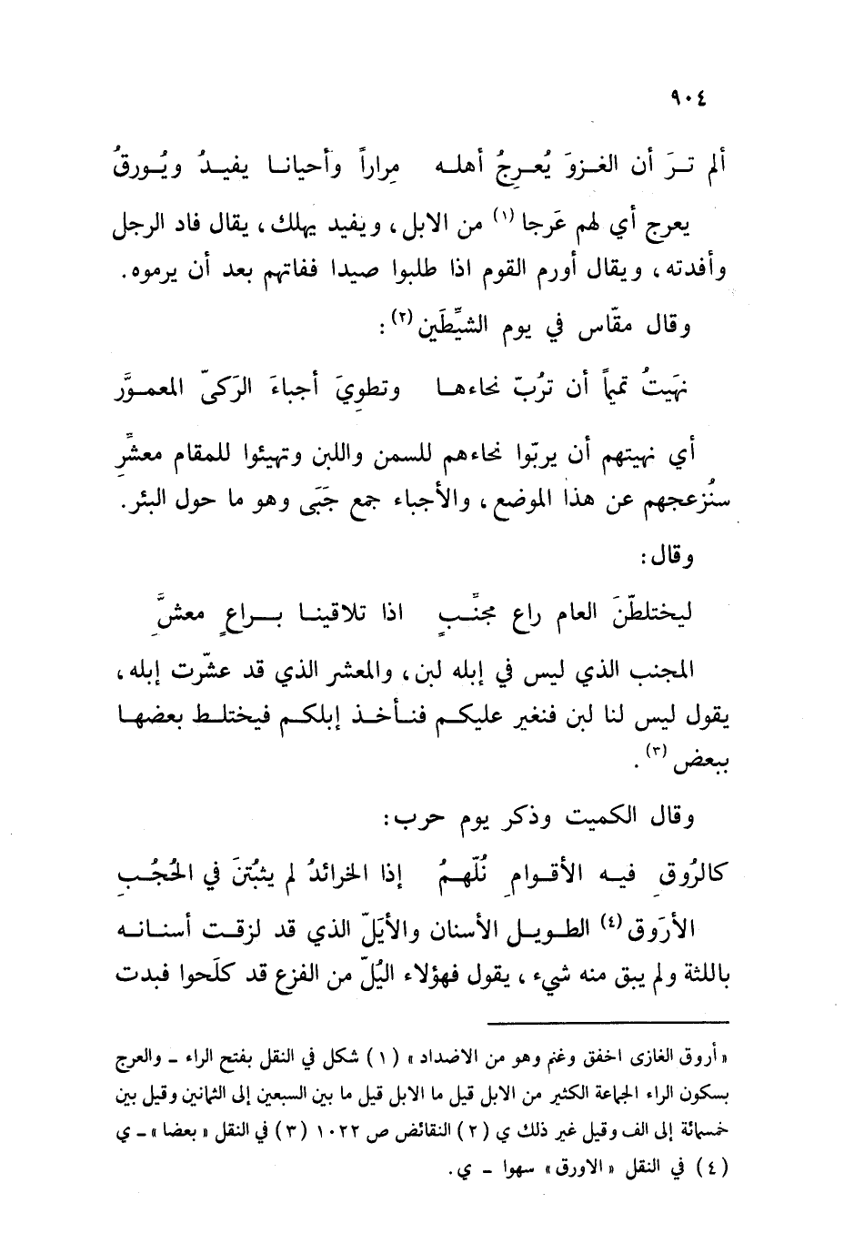 يعرج أي لهم عرجا من الابل، ويفيد يهلك، يقال فاد الرجل وأفدته، ويقال أورم القوم إذا طلبوا صيدا ففاتهم بعد أن يرموه. وقال مقّاس في يوم الشيطَين: